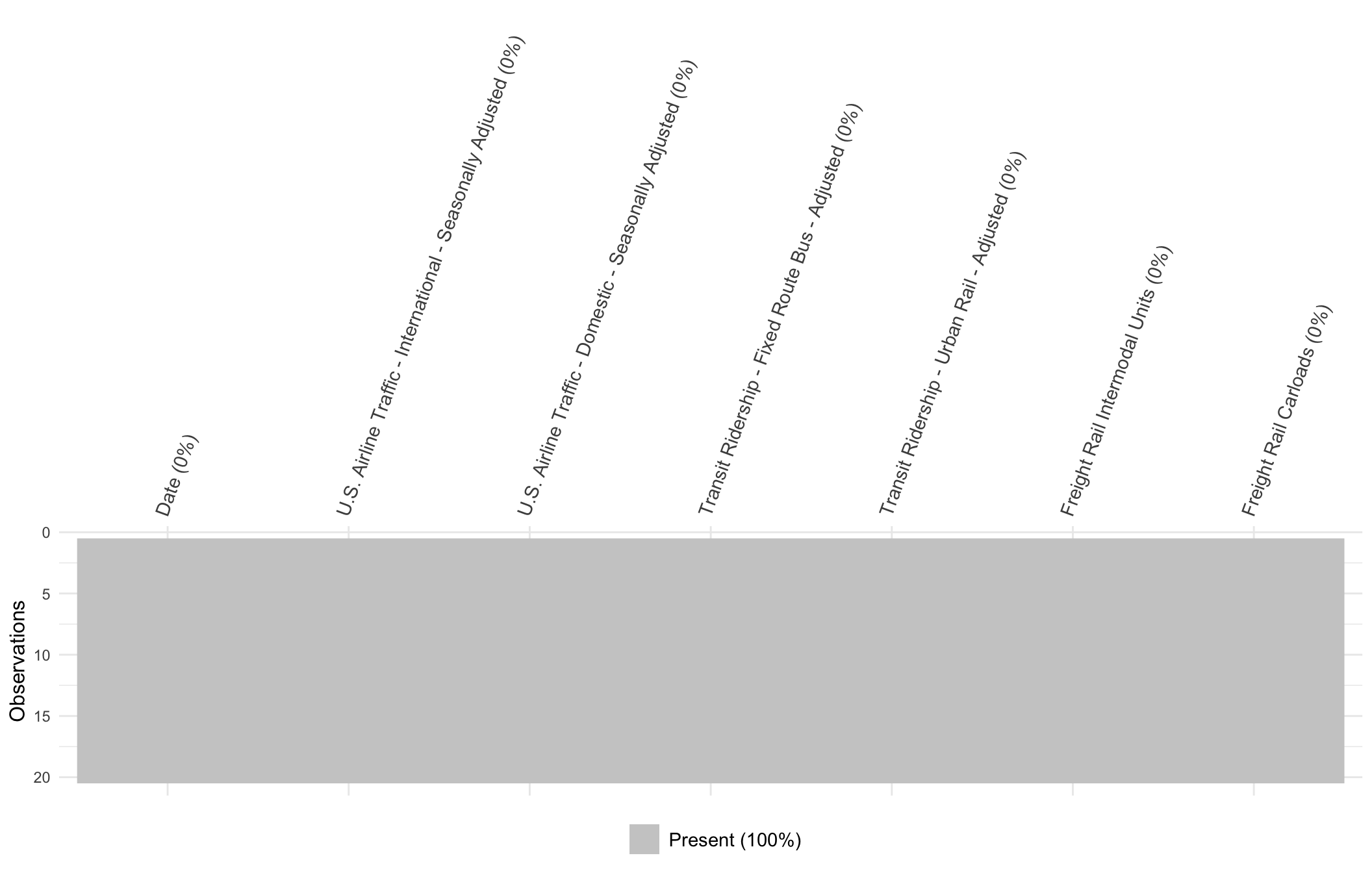 Similarly, we present the missing value plot for transportation data. Since the dataset contains 137 columns, to better display the result, we only select the columns that are used in our project. The time interval that is between 2019-05-01 to 2020-12-31.
